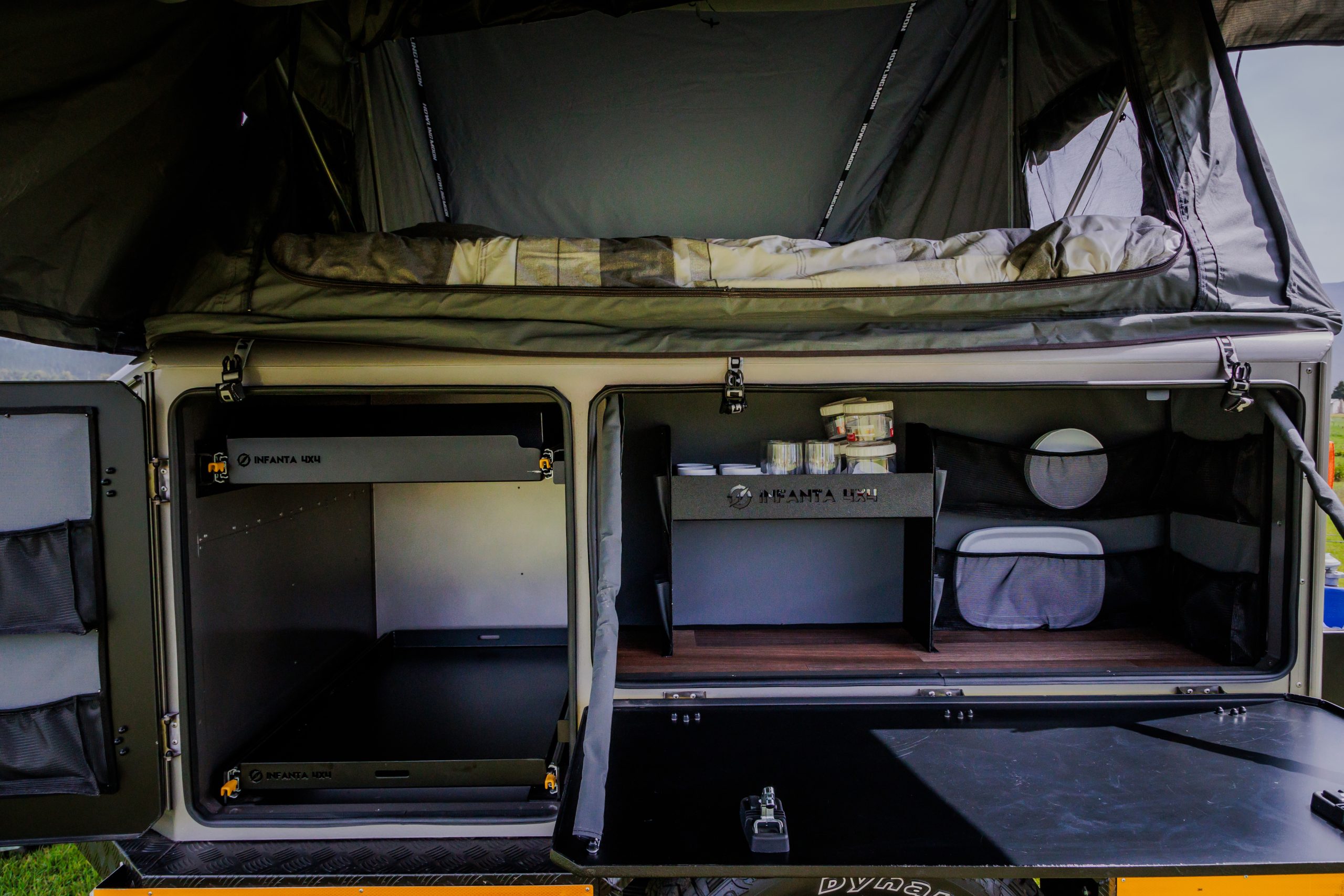 Introducing the Ingane, the newest member of the Infanta 4×4 family. This serious off-road trailer is designed for the enthusiastic off-roader who doesn’t compromise on capability or comfort. Despite its compact size, the Ingane expands into a spacious and comfortable living area when you set up camp, proving that good things come in small packages. As an off-road trailer, it’s engineered to be easy to tow, set up, and manage, making it the ideal companion for your adventures. The Ingane’s rugged construction ensures it can handle tough terrains effortlessly. Whether you’re exploring remote wilderness or tackling challenging trails, this camping trailer is ready to follow wherever you dare to venture.